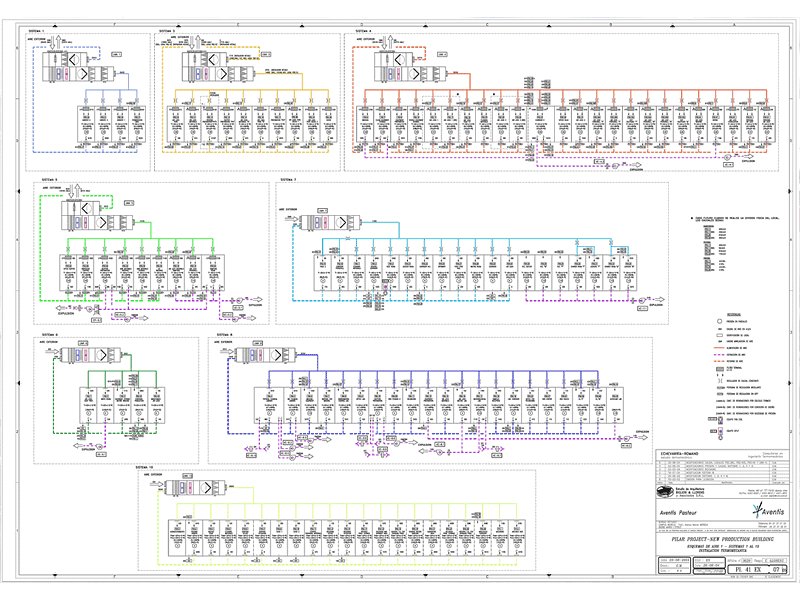 Sistema de aire acondicionado y ventilaciones mecánicas para Laboratorio de Control y Diagnósticos Biológicos BSL 2.. Con unidades de tratamiento de Aire, Filtrado H13 en extracciones con Sistema Bag-In / Bag-Out y generación de Agua Enfriada.